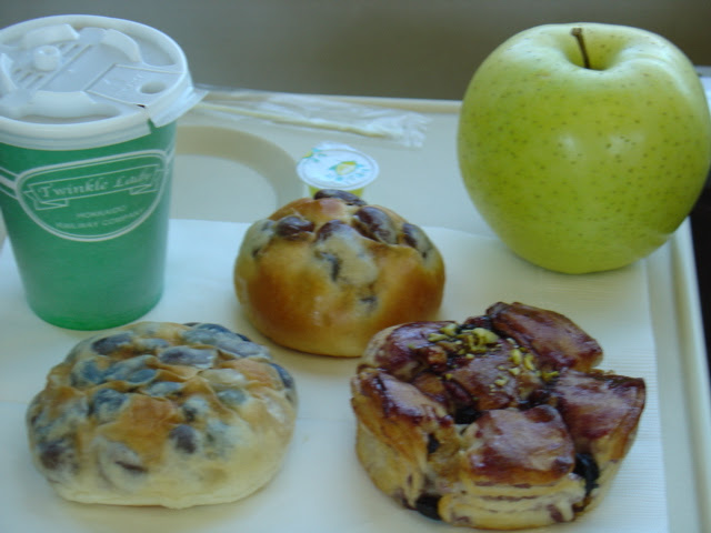 But I have to say that I am starting to crave vegetables. Aside from the pickled ginger that always accompanies raw fish here and that one piece of pepper tempura yesterday, I haven’t seen any vegetables at the dinner table. This morning, therefore, I broke down and took from the breakfast buffet a small plate of limp broccoli, cauliflower and carrots. One has to take things when they are offered in life. [For the curious: I had this BEFORE my cup of coffee and cereal; I pretended that I was still eating last night’s dinner before ultimately switching to breakfast.]