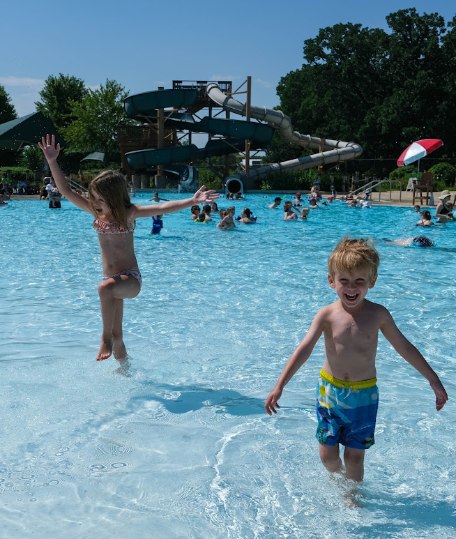 It's the best place to go on a weekend morning if you're with young kids because they keep big kids and people without kids out so that the chaos of shouting, splashing and bomb diving doesn't frighten the little tykes. We spend a wonderful hour on this very hot day doing some tame water play.